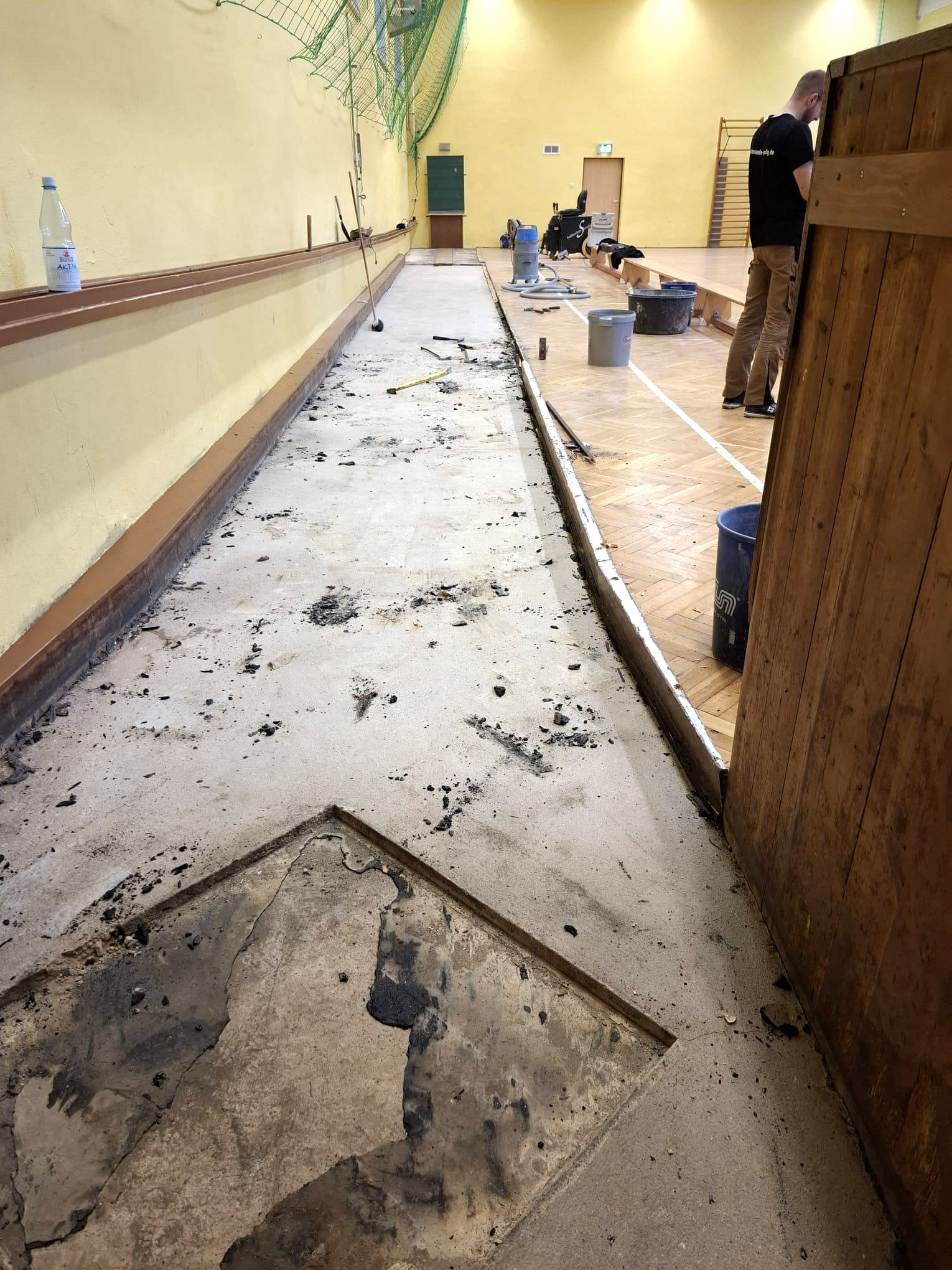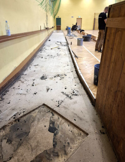 Im Rahmen dieses Projekts haben wir die Rand- und Funktionsbereiche der Turnhalle sowie die Kegelbahn umfassend saniert. Dazu gehörten die fachgerechte Entfernung alter Beläge, die Vorbereitung und Egalisierung des Untergrunds sowie der Neuaufbau belastbarer Bodenflächen.